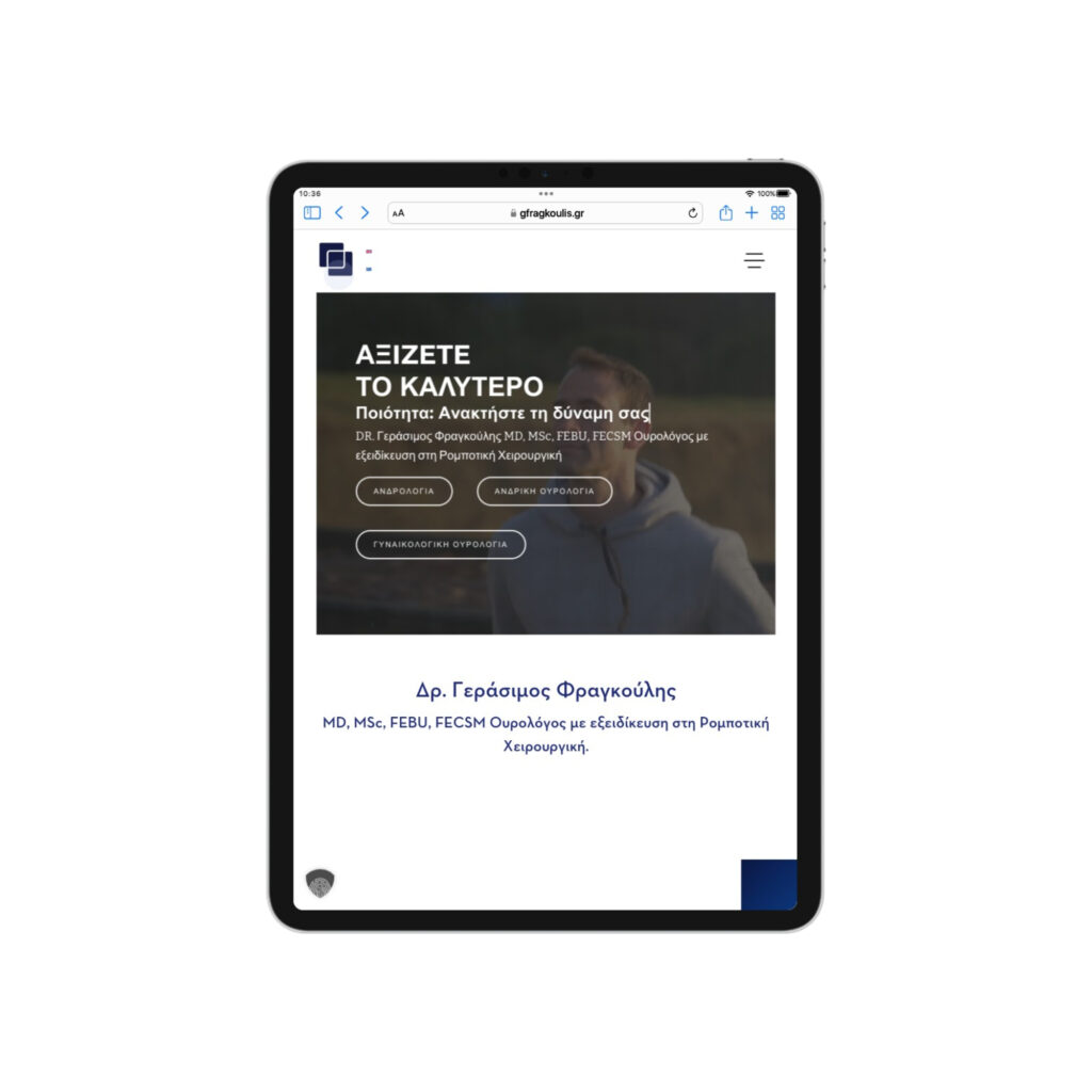 Πραγματοποιήσαμε εξατομικευμένο σχεδιασμό για τον ιστότοπο gfragkoulis.gr. ο Δρ. Γεράσιμος Φραγκούλης είναι ένας εξέχων Ουρολόγος - Ανδρολόγος που έχει αποκτήσει εκτενή εκπαίδευση και έχει αποδείξει την αξία του μέσα από την πλούσια επαγγελματική του εμπειρία.